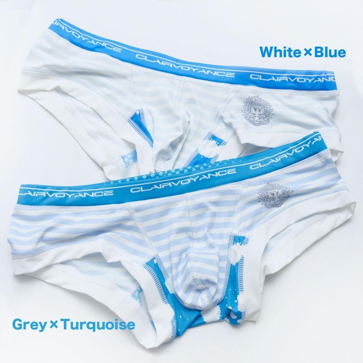ホワイトとグレーのボーダーにターコイズのウエストバンドで、White×Blueと少し印象を変えたGrey×Turquoiseです♪